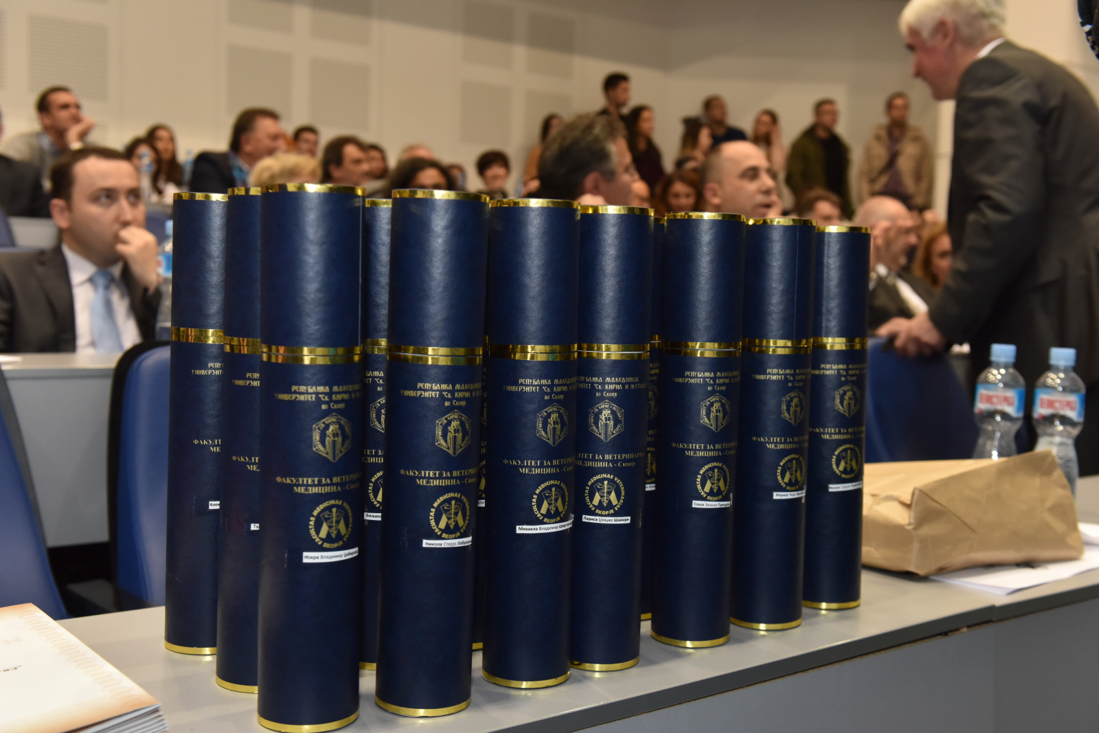 The granting of diplomas coincided with the 90th anniversary from the start of the institutional activity for veterinary medicine in Macedonia, whose development route began in 1927 when the Veterinary Department in Skopje was established for the first time, which continued its development through the Veterinary Institute, and also today performs its work and activity at the Faculty of Veterinary Medicine – Skopje at the University of Ss. “Cyril and Methodius” in Skopje.